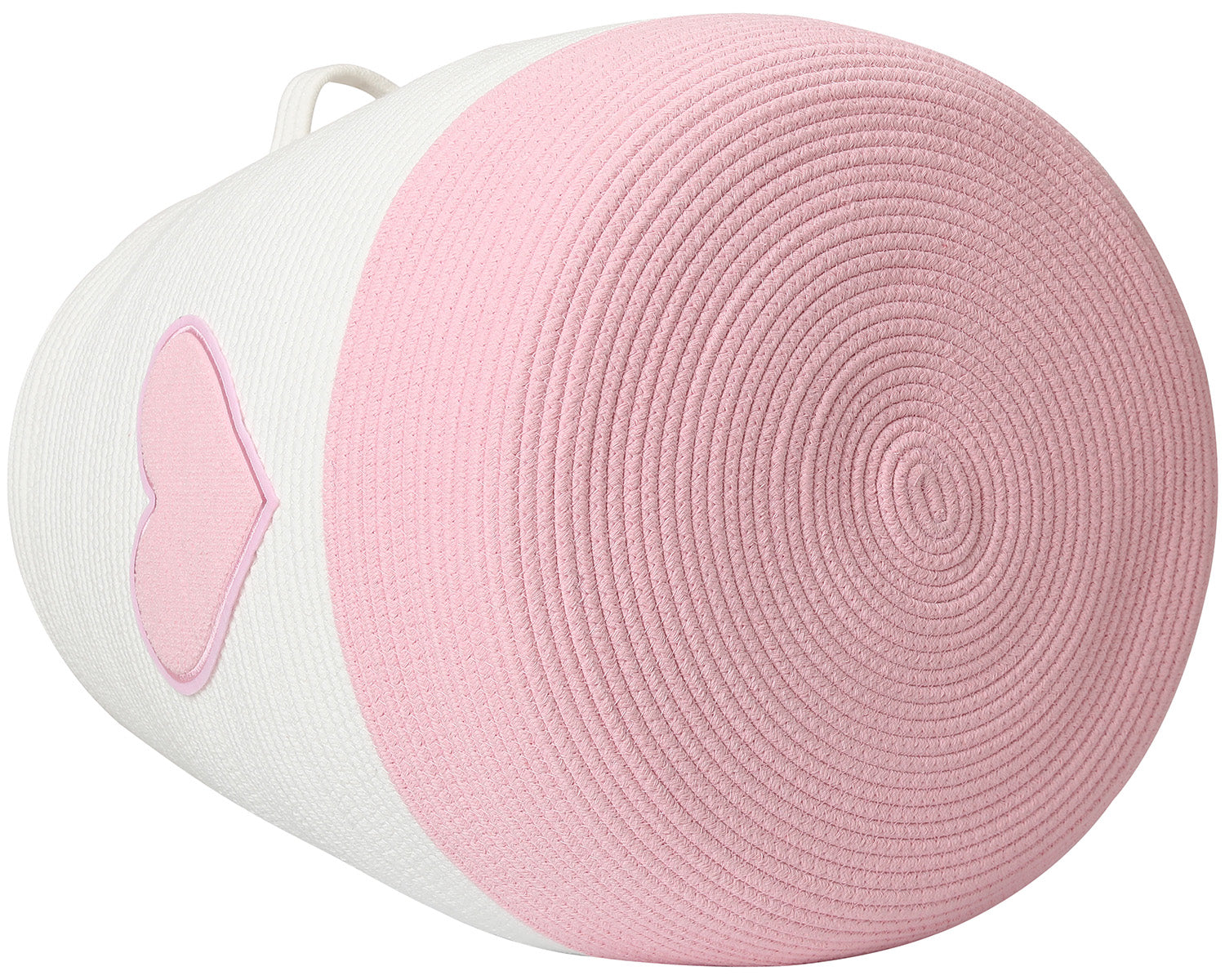 20" x 20" Extra Large Cotton Rope Storage Basket with Lid – Flagon Design – Perfect for Clothes, Blankets, and Living Room Organization - Pink Heart