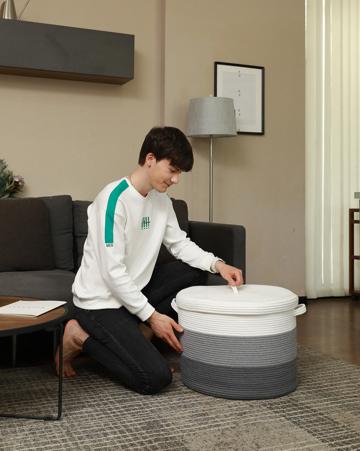 Stylish and Sustainable Round Cotton Rope Baskets with Lids Organize your space...