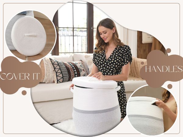 Stylish and Sustainable Round Cotton Rope Baskets with Lids Organize your space...